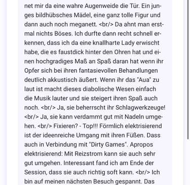 Beautiful woman, insane body, horny feet, passionate about things and mega service-oriented! I can only recommend!!!