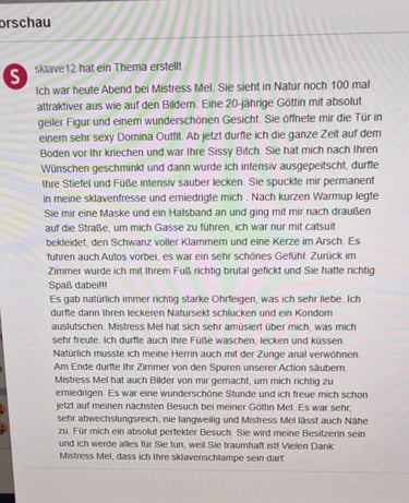 Thanks for the welcome. Yes, everyone has their own preferences, I'm totally into domination but also GF6. Everyone as he likes it, I live by the motto: live and let live. Yes, she's awesome, a very horny woman in every respect! Thanks for the link, I'll read the report straight away!