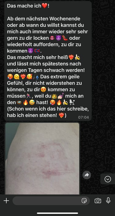 She worked my tail with her feet and continuously spat on and insulted me. Then she turned and sat directly on my face with her simply perfect butt while she was working my tail with her hands. I was forced to lick her sweet, smooth anus, my tongue meandered as deep as possible into her, insane. It continued for a while until she pressed her dream pussy into my face, which I was allowed to lick for a long time. She stood back, showed me her perfect body and put her hot foot in my mouth or fucked my mouth with her feet !! She actively "poked" her hot feet into my mouth and at the same time pulled on the leash of the collar so that I had to deeothroat her entire foot!